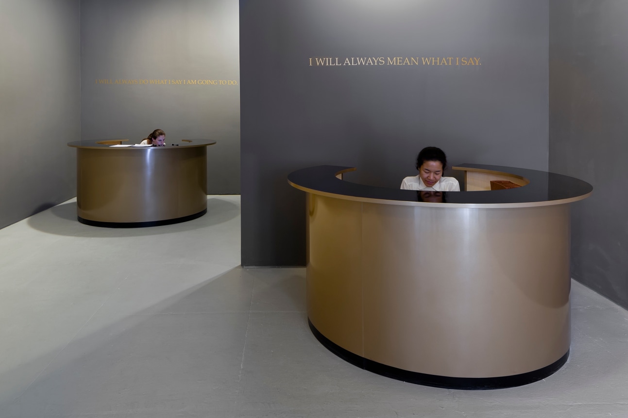 Installation view, Adrian Piper, The Probable Trust Registry, 2014, Elizabeth Dee