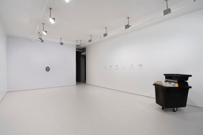 Featuring two new video animations, a news media video, indexical text and image installations, sculptural editions, and appropriated and re-worked photographs, this exhibition pivots around a single phrase