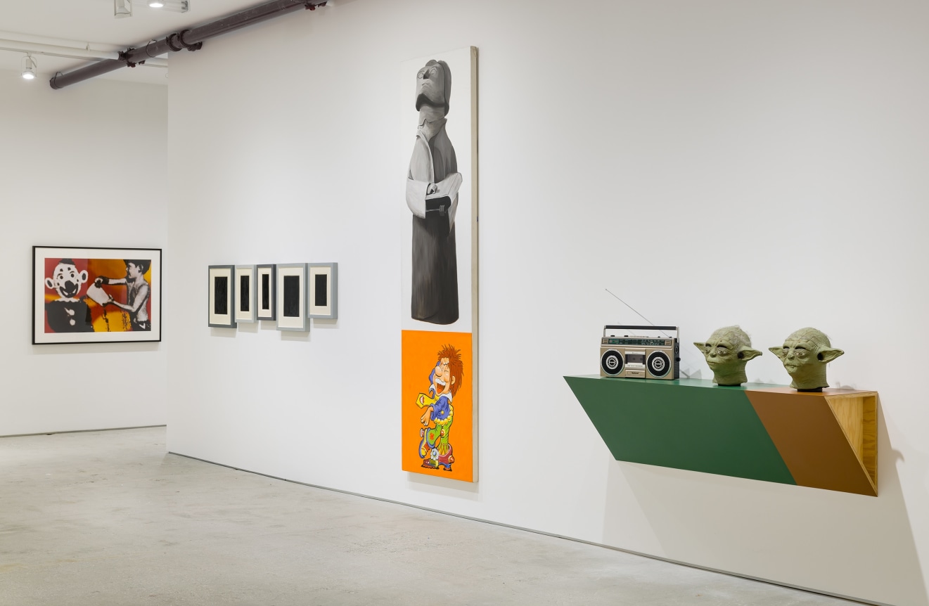 The original exhibition, Infotainment, was organized by Anne Livet, in close collaboration with artists and co-founders of the gallery Nature Morte, Peter Nagy and Alan Belcher, and was a legendary intellectual appraisal of an interrelated East Village gallery scene in the 1980s. Infotainment argued for a generation of artists who adhered to neither Neo-expressionist painting nor the direct repurposing of images by the Pictures Generation, but instead imbued their content with social and philosophical resonance. Inheritors of 1960s Conceptualism, these artists worked with increased stylization, transference of images, appropriation and subversion of authorship in favor of that which relates to media, television and advertising, thus furthering the dialogue of the Pictures Generation artists through strategies arguably more relevant to the social and political time of the 1980s.