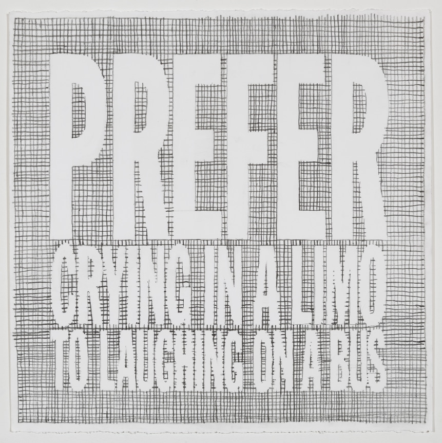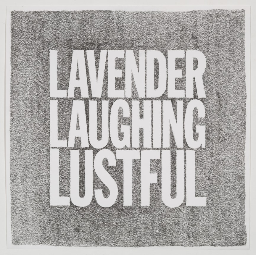 Additionally, the continuation of the exhibition on the second floor will be devoted to graphic works on paper in two site-specific installations. The watercolors highlight the chromatic diversity and illuminate the attitudinal content in Giorno’s boundary crossing works. In contrast, the graphite works in the adjacent gallery are smaller and more intimate. They employ handwriting on themes past and present, evoking a quality of line that is both raw and intensely energetic.